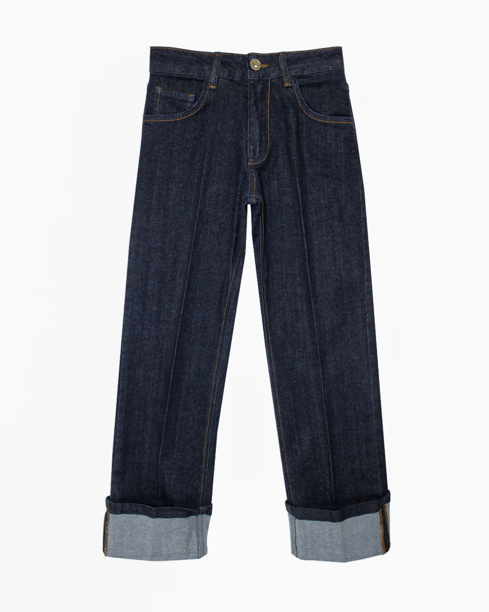 Cropped Denim Jeans with Cuffed Hem